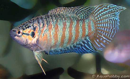 Alimentação: Onívoro, aceita praticamente todos os tipos de rações. Aconselhável dar alimentos vivos pelo menos uma vez por semana. Ótimo comedor de Hydras e de filhotes de caramujos (Physas, Red Ranshorn, Trombeta, etc.).